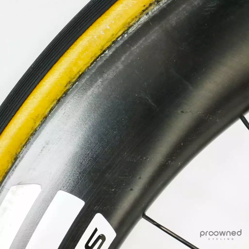 The wheel is equipped with a pair of used Vittoria Corsa Graphene 2.0.